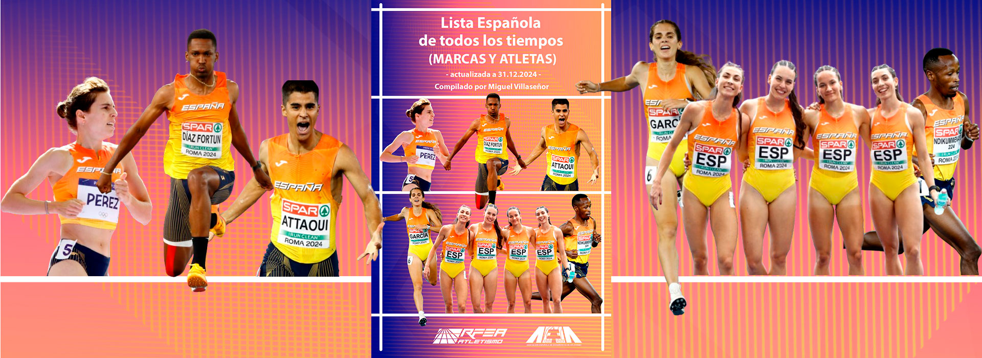 Con Marta Pérez, Jordan Díaz, Mohamed Attaoui, Marta García, Thierry Ndikumwenayo y el cuarteto femenino de 4×400 metros en portada como grandes protagonistas de 2024, y fieles a la cita anual, presentamos una nueva edición de la Lista española de todos los tiempos, cerrada a 31 de diciembre de 2024. Una obra de 868 páginas de la Asociación Española de Estadísticos de Atletismo (AEEA), siempre en estrecha colaboración con la Real Federación Española de Atletismo.