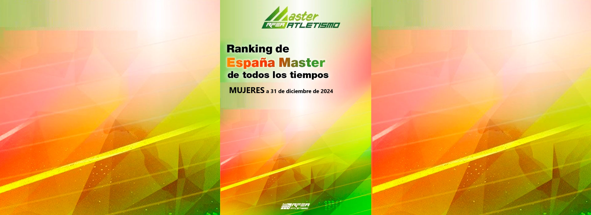 Publicamos la versión completa y actualizada del Ránking de España Master Mujeres de Todos los Tiempos a fecha 31 de diciembre de 2024. En él se incluye a las 25 mejores atletas en cada prueba y categoría. Están las pruebas habituales de aire libre incorporando aquellas marcas logradas en Short Track, si entran entre las mejores, y también el ranking de Short Track. En esta ocasión se incorporan, además, las marcas en relevos mixtos 4×100, 4×200 y 4×400.